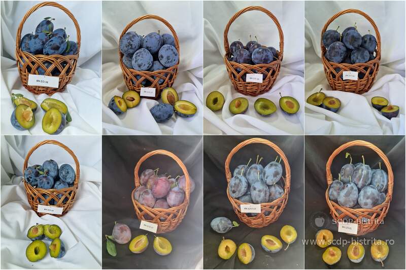 b. Referitor la potențialul productiv, soiul de prun transgenic HoneySweet a înregistrat o producție comparabilă cu cea a soiului Stanley, în timp ce soiul Reine Claude d’Althan a prezentat un nivel productiv semnificativ inferior. În aceste condiții, HoneySweet se încadrează în categoria soiurilor cu productivitate ridicată. Evaluarea potențialului calitativ evidențiază superioritatea soiului de prun transgenic HoneySweet față de cele două soiuri convenționale analizate, exprimată prin greutatea medie mai mare a fructelor, o pondere mai redusă a sâmburelui în masa fructului comparativ cu soiul Stanley, o formă ovală mai regulată și un nivel superior de atractivitate vizuală. Din punct de vedere al compoziției chimice, HoneySweet se încadrează în grupa soiurilor cu valoare nutrițională ridicată.